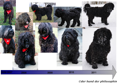 Es ist Tradition bei uns, jedes Jahr zu Neujahr zwei Fotos von Habca zu machen, eins im Stehen und eins im Sitzen. Eigentlich trägt sie dazu ihr rotes Halstuch, das habe ich dieses Jahr vergessen. Jedes Jahr finde ich, dass sie dieses Jahr wirklich am Schönsten aussieht. Dass ich ihr die ersten drei Jahre die Ponyhaare nicht gebändigt habe kann ich jetzt gar nicht mehr verstehen – sie hat sooo schöne Augen (aber sie hat es wirklich gehasst irgendetwas in ihrem Haar zu haben). Ihr allererstes Silvester, 2005/06 hat die Kleine noch beim Züchter verbracht. Im Februar ist sie fünf Jahre bei uns… und, hey, wir haben uns schon ein bisschen kennengelernt!