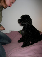 1. Ich mache mit Habca Apportierübungen auf einer großen, ziemlich leeren Wiese. Habca ist an der langen Schleppleine. Ein Chinese Crested Dog ohne Leine kommt angelaufen und schnuppert an meiner Tasche, die ich im Gras abgelegt habe. Das quittiert Habca mit wütendem Gebell, woraufhin ich sie zu mir rufe, den Kleinen jetzt schon fest an ihr Hinteteil geheftet. Habca versucht ihn wegzuschnappen (obwohl ich mich sonst ärgere, wenn sie schnappt, lasse ich das Wegschnappen wenn sie läufig ist zu). „Die ist aber zickig!“, ruft der Besitzer des haarlosen Chinesen herüber. „Naja, sie ist läufig“, rufe ich zurück. „Oh nein!“. Er ruft seinen Hund mehrmals, natürlich ergebnislos. „Der kriegt schon Tabletten gegen seine Triebigkeit, und jetzt das!“, ärgert er sich, „Können Sie sich nicht ein Schild umhängen?“