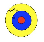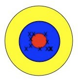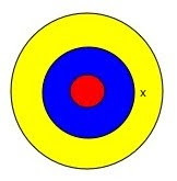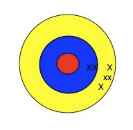 Schauen wir uns nochmal die Zielscheibe an. Das hier war der erste Schuss: