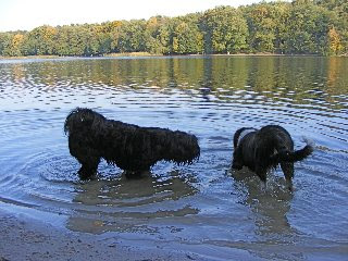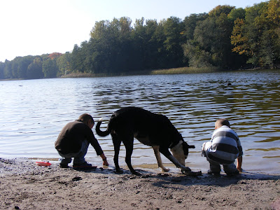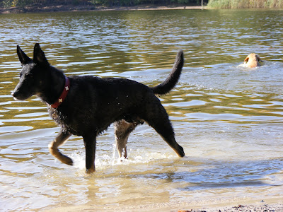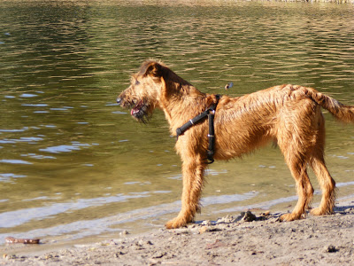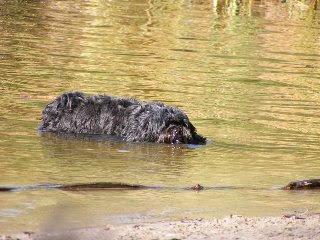 Ein großer Apportierer. Sein Herrchen wurde dann furchtbar sauer, weil ein Labbi die Stöcke schneller aus dem Wasser fischte als sein eigener Hund, und sich auch noch in seiner Nähe schüttelte. Da musste er Labbiherrchen kräftig anpöbeln.