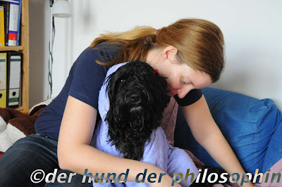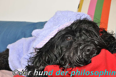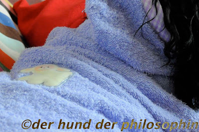Wie gut, dass Du zu Weihnachten einen Bademantel bekommen hast. Kannst Du Dich in den Bademantel einkuscheln und Deinen Vormittagsschlaf auf dem Sofa halten, während ich mit einer Tasse heißen Kaffee am Tisch meine Hundepsychologieaufgaben löse.