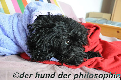Wie gut, dass Du zu Weihnachten einen Bademantel bekommen hast. Kannst Du Dich in den Bademantel einkuscheln und Deinen Vormittagsschlaf auf dem Sofa halten, während ich mit einer Tasse heißen Kaffee am Tisch meine Hundepsychologieaufgaben löse.
