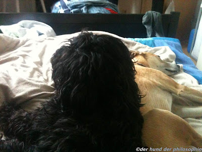 Eine echte Hündinnenfreundschaft ist etwas ganz anders als Rüdenkumpanen oder gemischtgeschlechtliche Freundschaften. Ich empfinde ein liebevolles Einverständnis miteinander bei den zwei Mädels. Beide für sich sind ja nicht einfach, Nomi mag andere Hunde nicht besonders und Habca legt furchtbar viel Wert auf Etikette. Aber ihre Freundin, die darf jetzt alles, und wehe jemand kommt ihr zu nahe.