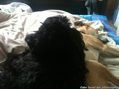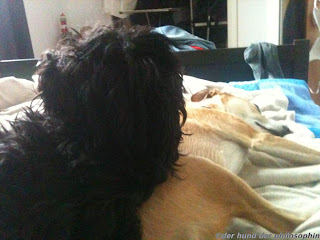 Eine echte Hündinnenfreundschaft ist etwas ganz anders als Rüdenkumpanen oder gemischtgeschlechtliche Freundschaften. Ich empfinde ein liebevolles Einverständnis miteinander bei den zwei Mädels. Beide für sich sind ja nicht einfach, Nomi mag andere Hunde nicht besonders und Habca legt furchtbar viel Wert auf Etikette. Aber ihre Freundin, die darf jetzt alles, und wehe jemand kommt ihr zu nahe.