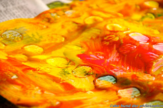 Was auch gut aussieht ist wenn man mit verschiedenen (nicht scharfen) Gegenständen Muster in die frischen Bilder kratzt. z.B. mit einem Kamm oder einer Gabel :-)