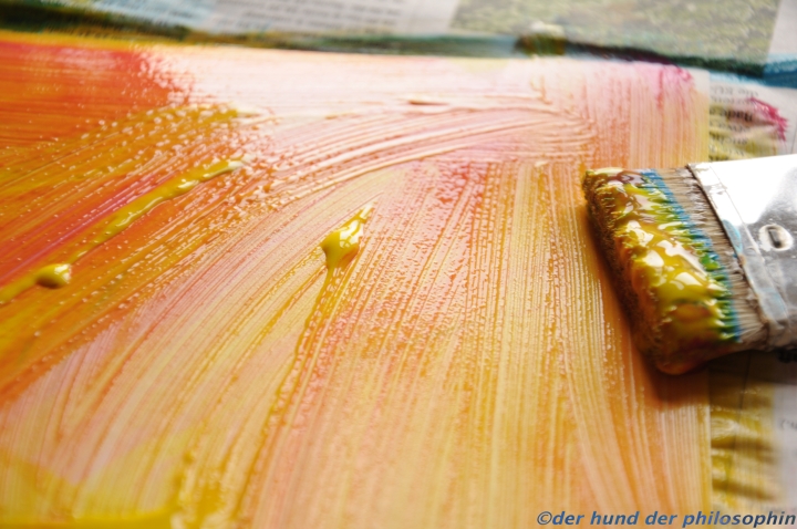 Was auch gut aussieht ist wenn man mit verschiedenen (nicht scharfen) Gegenständen Muster in die frischen Bilder kratzt. z.B. mit einem Kamm oder einer Gabel :-)