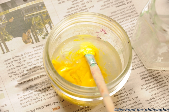 und wasserlösliche Farbe. Ich nehme Acrylfarbe.