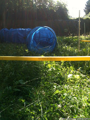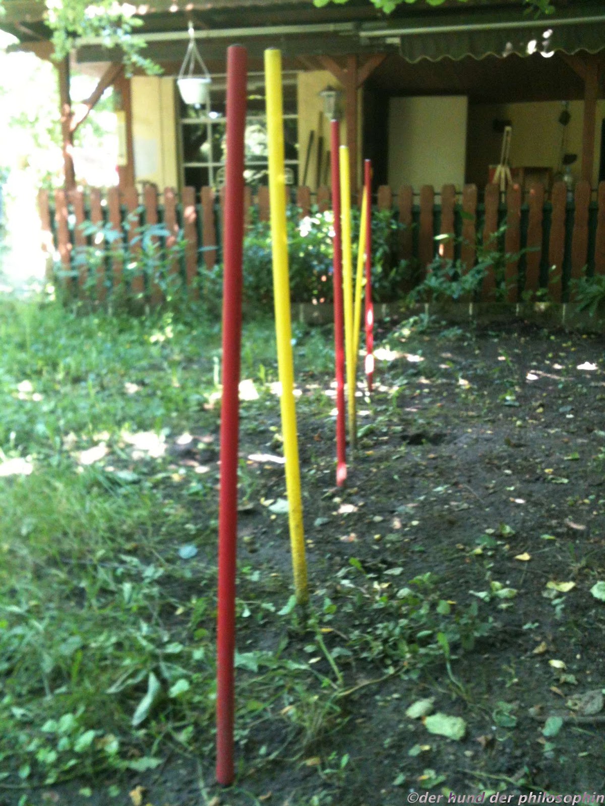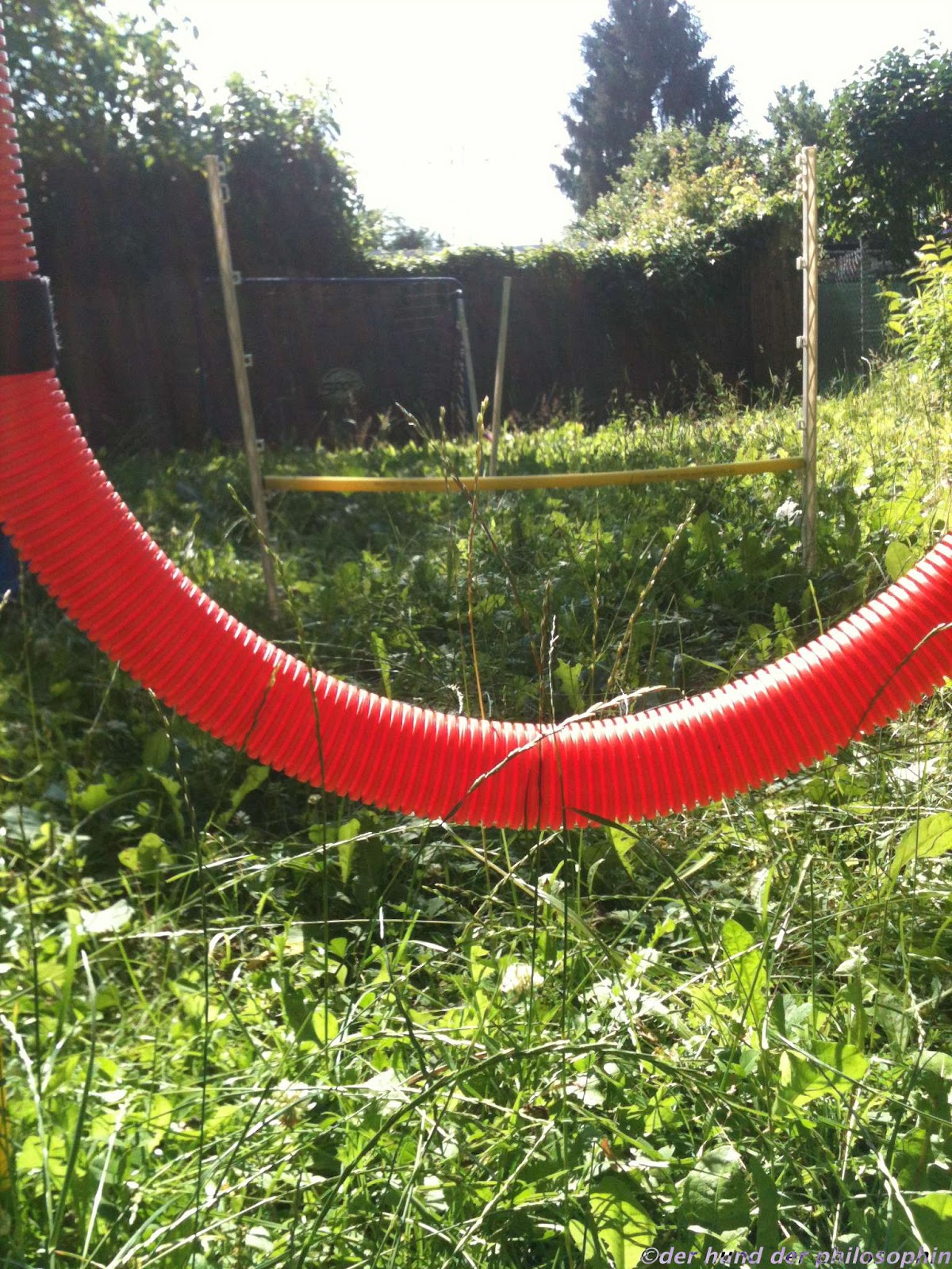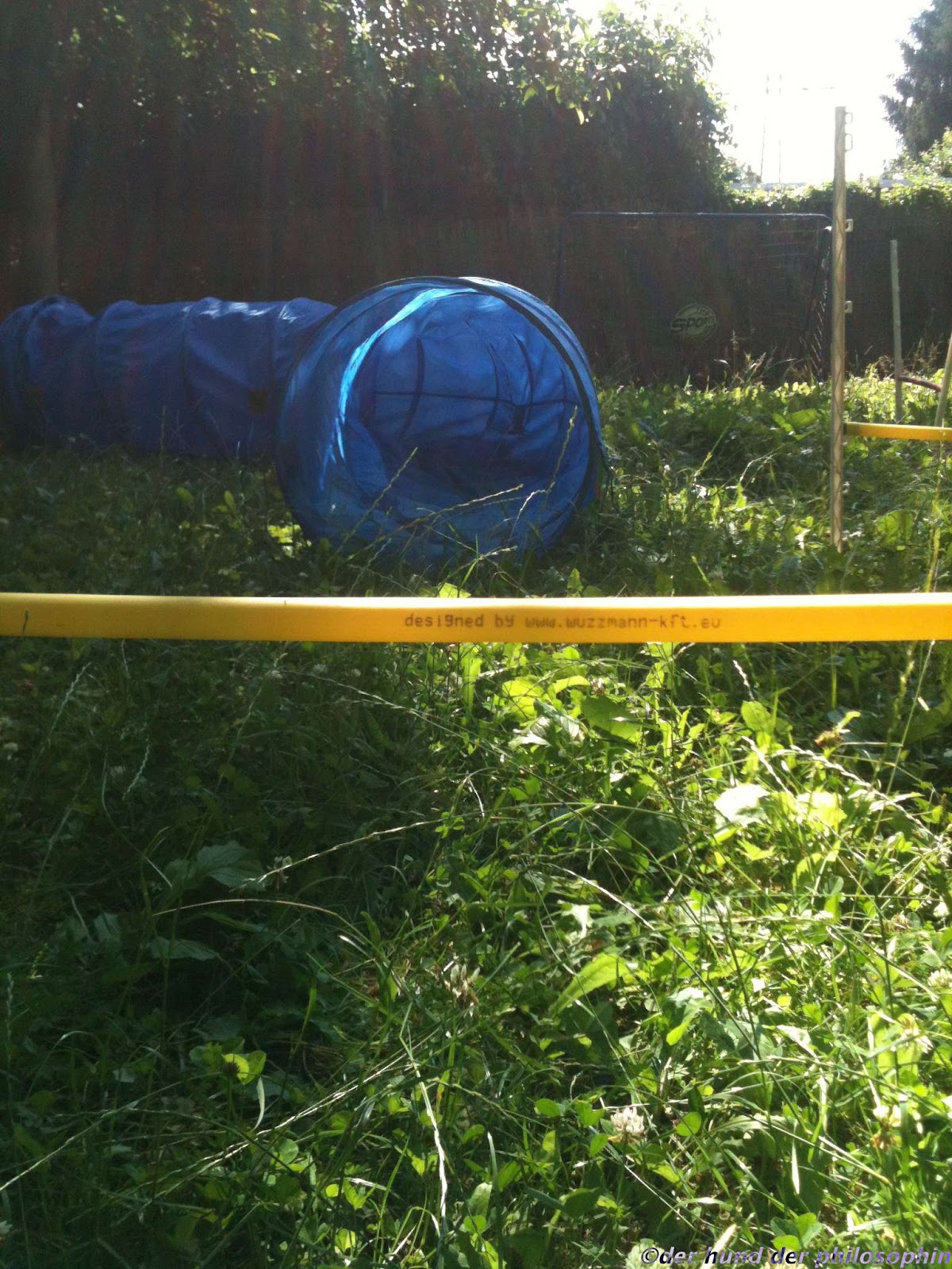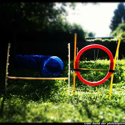 Und so wie man in Konversationsklassen im Fremdsprachenunterricht Zeitungsartikel als Grundlage einer Diskussion nimmt so nehme ich gerne Agility. Der Mensch ist befreit von seinen Sorgen um Wohl und Leben von Hund und Menschen. Wir reden erstmal nur über „der Reifen oder die Hürde?“ „Springen oder Kriechen oder Umrunden?“ „was meinst Du denn genau?“ „und danach?“ „nicht so schnell!“ – „nein, Du bist zu langsam!“ „Durchrennen? Ich habe eine bessere Idee!“