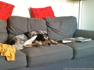 Ganz klar, Mauri ist in den vielleicht exklusivsten Club der Welt aufgenommen: Der Club-der-Hunde-die-aufs-Wohnzimmersofa-dürfen. Er ist das dritte Mitglied. Herr Mauri, ihre goldene Clubkarte wird in Kürze geliefert!