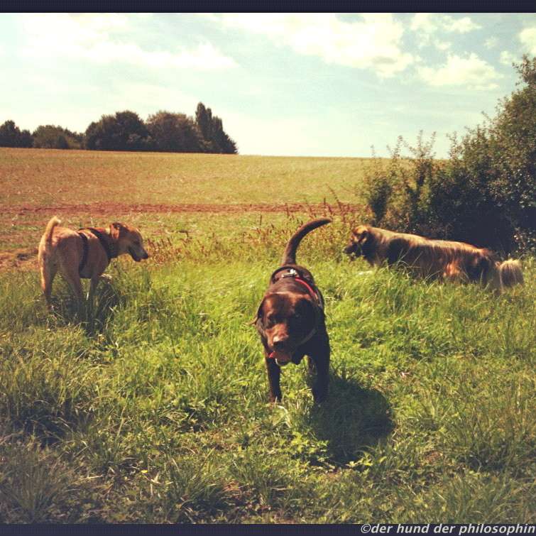 Jaja, wir gehen gerade gerne mit schicken Rüden, die Mädels und ich. Frauen Hündinnen sind uns zu zickig. ;-)
