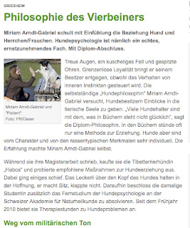 Heute hat die Frankfurter Rundschau ein Porträt über mich und meine Hundeschule gebracht: „Philosophie des Hundes“. Ich habe im Dezember ein sehr interessantes Gespräch mit der Journalistin geführt und bin ganz angetan, was sie daraus gemacht hat. Zumal ich nicht wusste wann der Artikel kommt und jeden Morgen gespannt den Frankfurtteil aufgeschlagen habe. Nur heute bin ich nicht dazu gekommen, saß nach einem schwierigen Termin im „Platz im Herzen“ mit einem heißen Kakao, erfuhr schlechte Nachrichten am Handy und blätterte in der Zeitung… und da war es, das Foto von mir und dem lieben Anton.