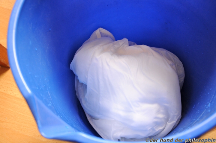 Mir ist auch bisher nichts besseres eingefallen als ein Eimer für den Aufbläh-Prozess. Ich denke nächstes Mal werde ich etwas suchen wo das Kissen mehr Platz hat sich zu entfalten… ;-)