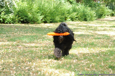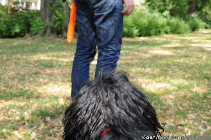Das neonorange ist wirklich gut sichtbar und auch Habca findet das Ding problemlos auf der Wiese.