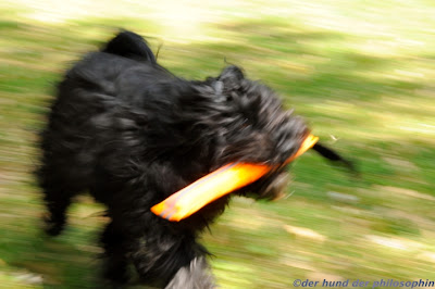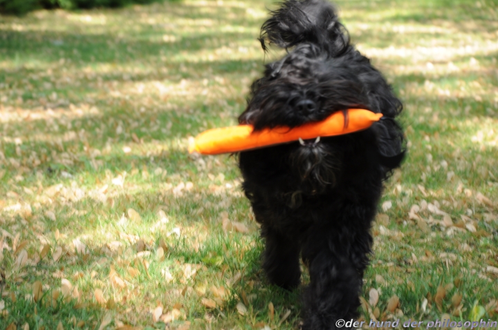 Ich mag solches Hundespielzeug: Es ist vernünftig, haltbar, nicht albern, nicht kitschig, aber auch nicht martialisch. Es quietscht nicht, es erfüllt seine Funktion. Habca findet es gut, sie ist gut damit zu motivieren – aber sie flippt auch nicht aus darüber und liegt später weinend vor ihrer Spielzeugkiste. Ich würde sagen es ist ein Sportgerät mit dem Mensch und Hund zusammen Spaß haben können, sich austoben, neue Sachen lernen. Es ist eher nicht geeignet es dem Hund allein zu überlassen und ich glaube auch nicht dass es der stupiden Tennisballfraktion den Ball ersetzt mit dem sie starr auf der Wiese stehen und werfen-holen-werfen, dabei am Besten noch rauchend und telefonierend. ;-)