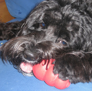 Nachmittags ist dann Zeit, eine Runde Dogbrick (s.u.) zu spielen – oder aber mit dem Kong® kämpfen. (Den Kong gibt es in fast allen Hundeläden, aber auch bei ebay etc.)
