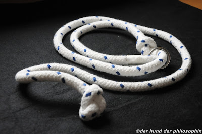 Ich liebe die Seehund-Leinen aus Tau, mit Knoten und Schäkeln statt Metallzeug. So lässig, so angenehm in der Hand und am Hund. Aber bitte nur für Hunde die nicht ziehen!